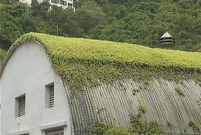 中文大學夏鼎基運動場旁邊的6間鐵皮屋,屋頂同樣種有植物。校方指出,6間鐵皮屋分別於2000年及2002年向屋宇署入則,並獲審批,現時用作體育館、貯物室及臨時辦事處。