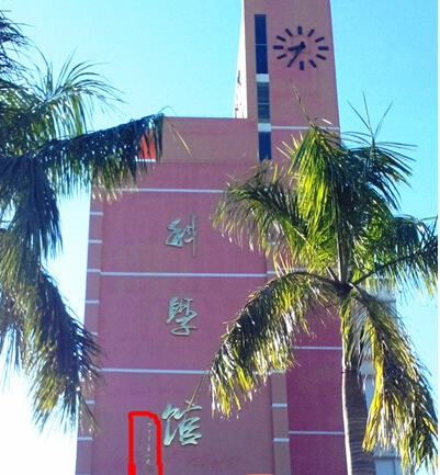 朱明國為母校題寫的“科學館”,落款已被抹掉