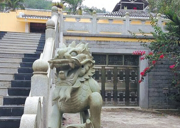 據當地村民介紹,“莊園內多是椰樹和檳榔樹,樹林中間是一塊鋪上混凝土的空地。空地的一邊是一個落滿枯葉的水池,另一邊是一棟大房屋。房屋共兩層,臺階一直延伸到二樓的正門,臺階的下方是一對石麒麟。二樓灰瓦黃墻,陽臺上的石刻護欄和臺階兩旁的石刻護欄連成一體,讓這棟房子乍看像寺廟或宮殿”。