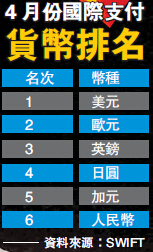 匯市波動影響人幣支付 國際排名降一位 專家稱只是暫時