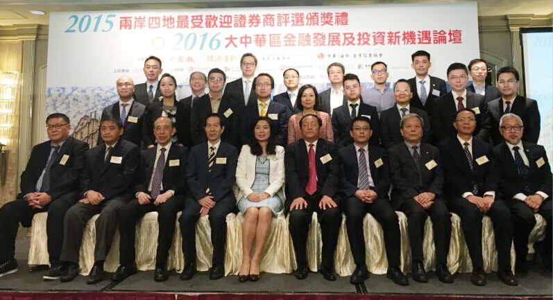 由香港商报、经济导报、中国商务总会和中国(海外)企业信誉协会联合主办,香港证券业协会、香港中国证券业协会、香港中国金融协会、港证券学会、香港证券及期货专业总会、证券商协会、中瑞岳华(香港)会计师事务所等衆多机构作支持单位的“2015两岸四地最受欢迎证券商评选颁奖礼”暨“2016大中华区金融发展及投资新机遇论坛”,27日下午在富豪香港酒店隆重举行。