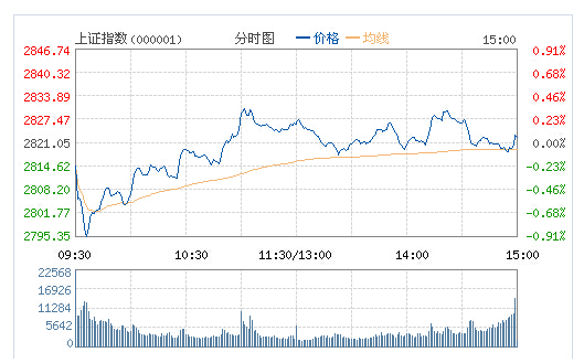 截至收盤,滬指漲0.05%報2822.45點,成交1156億元;深成指跌0.46%報9768.84點,成交2179億元。