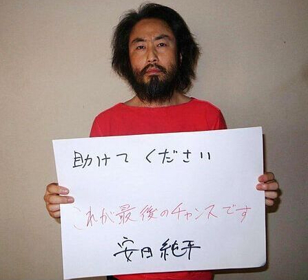 據臺灣“中央社”5月30日援引日本放送協會報道,敘利亞的反政府勢力份子于29日將疑似安田的照片上傳網絡。照片中的人拿著的紙張上面寫著:“請救我這是最后的機會”。此人留著長胡須,穿著橘色服裝。