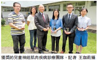 【香港商報網訊】記者王珈莉報道:「一步一腳印,同心護病童」是瑪麗醫院及大口環根德公爵夫人兒童醫院兒童神經肌肉疾病診療團隊的服務使命。兒童神經肌肉疾病是非常罕見的疾病,往往被視為X-file或奇難雜癥。團隊於2009年開始加強工作,透過多方面的發展,為不幸患有兒童神經肌肉疾病的孩子提供正確診斷,令他們可接受有效的治療訓練,為孩子及其家人帶來希望。團隊更獲得本年度醫管局頒發的傑出團隊獎。