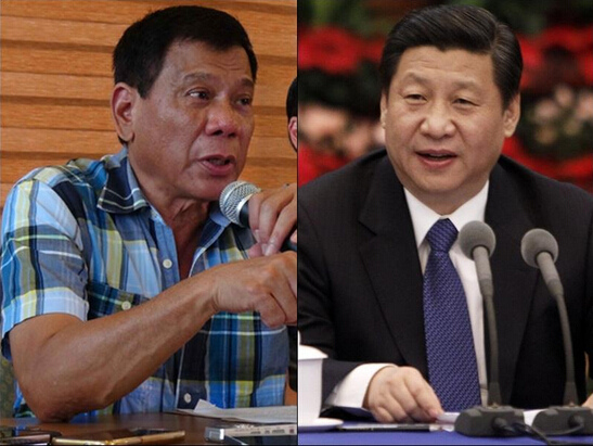 菲律賓總統當選人杜特爾特(左)稱呼中國大陸領導人習近平(右)為“偉大的主席”。