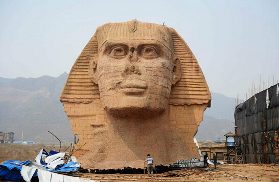 2014年5月,坐落在石家莊山前大道旁空地上的一座巨大的“獅身人面像”成為微博熱點。這個據稱照著埃及胡夫金字塔旁的獅身人面像,按1:1仿造的建筑引起熱議。正當網友想知道埃及人怎么看的時候,埃及文物部門一紙訴狀把這一侵權行為告到了聯合國教科文組織。