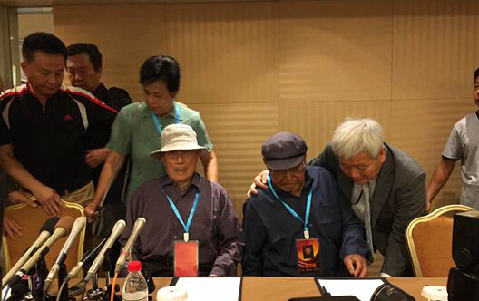 1日上午,三位在二戰期間被強擄到日本的中國幸存勞工代表在北京與三菱綜合材料公司簽署了協議,接受三菱材料的謝罪并達成和解。中新網記者 闞楓 攝