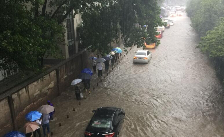 1日凌晨,武漢市遭遇今年最強暴雨,部分城區最高降雨量達到115毫米。暴雨導致武漢城區數十處地段出現內澇,重要交通道路被阻造成擁堵。