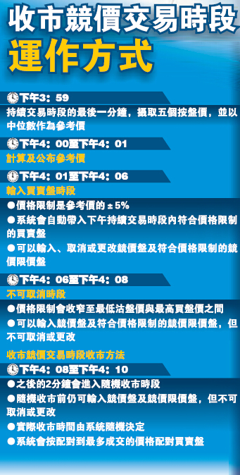 收市競價下月推 不法行為易追蹤