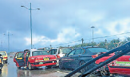 另外,北大嶼山公路在滂沱大雨下,往機場行車道一小時內接連發生6宗交通意外,涉及20輛車,造成4人受傷送院,幸各人傷勢無大礙,事故令往機場交通一度大排長龍。