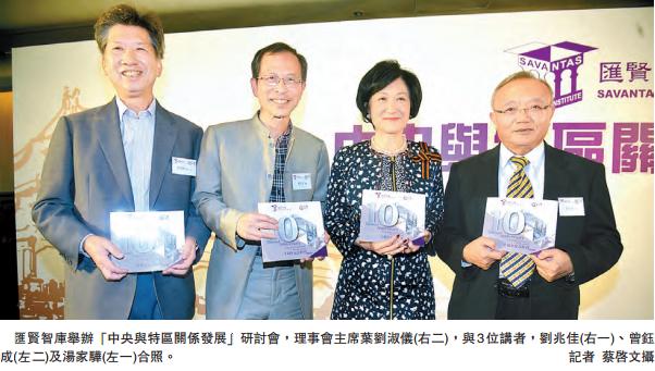 匯賢智庫理事會主席葉劉淑儀致辭時說:「中央與特區關係是最近熱烈討論的話題。當2012年時任國務院港澳辦副主任張曉明發表題為《豐富一國兩制實踐》的文章,可見中央當年已提示我們要全面準確了解『一國兩制』。到2014年中央政府史無前例發布《「一國兩制」在香港特別行政區的實踐》白皮書。到今年全國人大委員長張德江視察香港,在晚宴期間提出勿忘初心、保持耐心、堅定信心的『三個心』講話,因此中央與特區關係的話題非常重要。」
