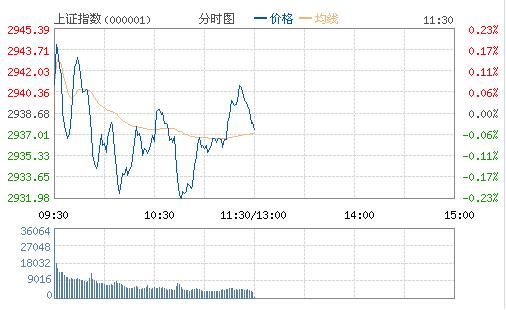 截至中午收盤,滬指跌0.4%報2937點,成交981億元;深成指漲0.27%報10372點,成交2009億元。