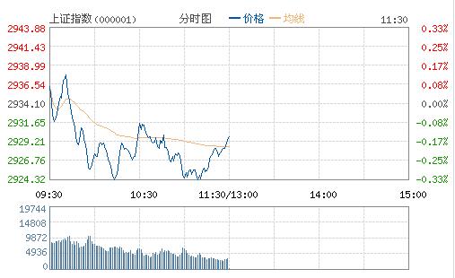 兩市雙雙高開,隨后窄幅震蕩下挫,券商、銀行等金融股護盤,板塊方面跌多漲少。截至午間收盤,滬指跌0.15%報2929.79點,深成指跌0.25%報10336.83點。
