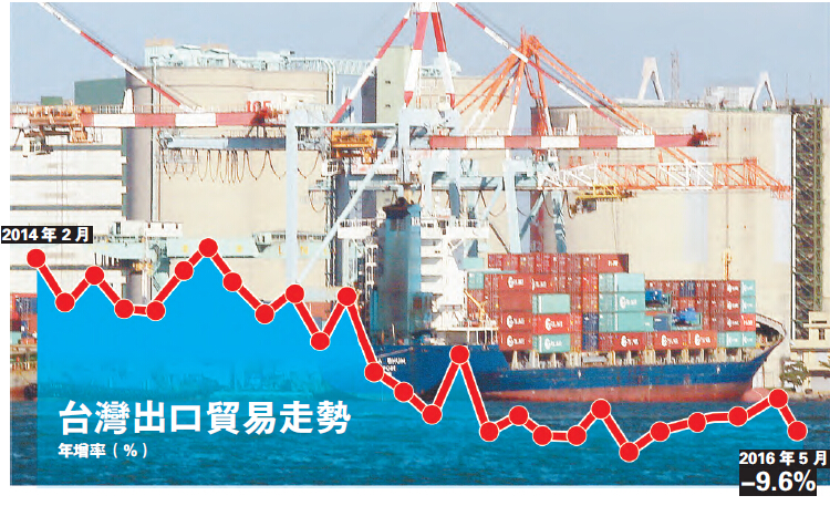 【香港商報網訊】臺灣財政部昨日公布5月出口235.4億美元(約合1828億港元),同比減少9.6%,連16個月負增長,繼續改寫金融海嘯以來最長衰退紀錄。其中,前5個月臺灣對大陸(不含香港)累計出口272.7億美元,同比下降13.5%,5月出口62億美元,同比下降10.5%。