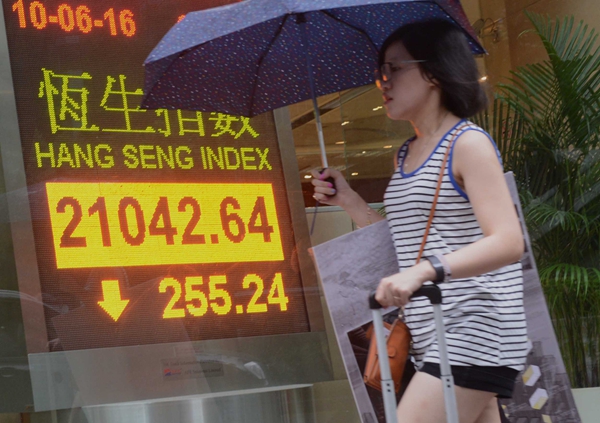 6月10日,香港恒生指數收市報21042.64點,下跌255.24點,跌幅為1.20%,全日成交金額545.06億元。恒指本周累計上升90.40點;升幅為0.5%。中新社發 鄧慶樂 攝