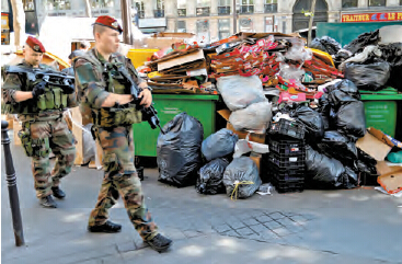 在巴黎,堆積如山的垃圾與嚴密的保安,成為今年歐國盃一大特有景色。路透社