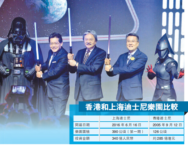 【香港商報網訊】記者譚之穎報道:又到暑假,主題樂園迎來游客高峰期。倒數5天就開幕的上海迪士尼樂園,以中國特色作招徠,走高科技路線,挑戰香港迪士尼樂園的地位,引發滬港迪士尼樂園搶客戰。另一邊廂,昨日香港迪士尼宣布改裝部分園區,以星球大戰新主題主動迎戰。