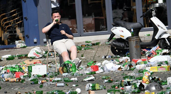 报道说,30多名法国足球流氓向正在平静地喝酒的北爱尔兰球迷聚集的地方投掷了一个瓶子,这些法国球迷高唱法国国歌《马赛曲》,气势逼人,显然是故意挑衅。最後双方爆发激烈冲突,挥拳相向,并用酒瓶和桌椅袭击对方。据透露,参与冲突的球迷超过100人。