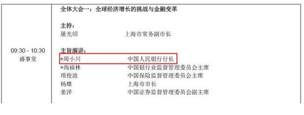 备受期待的央行行长周小川并未按此前官方拟定议程,出席本次陆家嘴论坛。在记者今日拿到的最新议程中,以找不到周小川的名字。