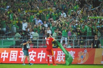 馬季奇謝場時與國安球迷互動。京華時報記者潘之望攝