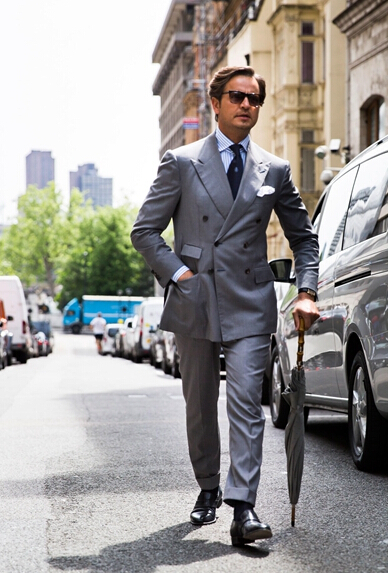 除了彰顯個性的各色混搭,還有這種復古紳士西裝的裝扮,雨傘更多是作為配飾,有木有一種王牌特工的趕腳。