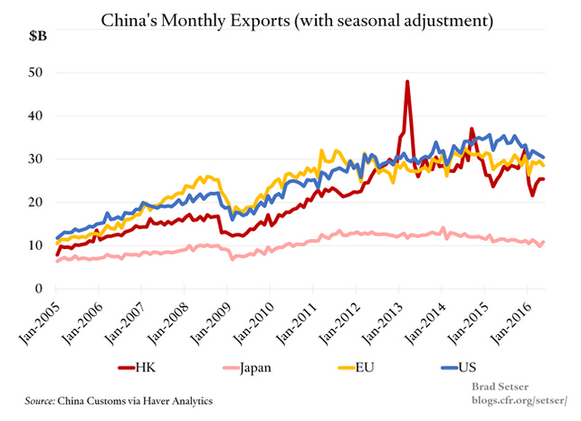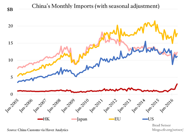 近期內地從香港的進口數據值得關注,但這種規模還不至于對中國當前的外匯政策構成挑戰,Setser認為。