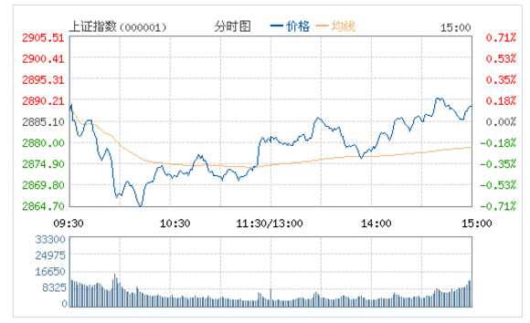 今日兩市全天震蕩拉升,創業板走勢較弱,權重股維穩大盤,題材股午后活躍。截至收盤,滬指跌0.13%報2888.81點,深成指漲0.39%報10221.85點。