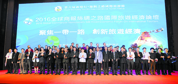 【香港商報网訊】記者李穎、陳文智蘭州報道:正是隴上好風景,金城夏都迎君來。由全球商報聯盟與蘭州市人民政府聯合主辦的「2016全球商報絲綢之路國際旅遊經濟論壇」暨全球商報聯盟第七屆年會昨日在蘭州隆重舉行。全國人大常委會原副委員長許嘉璐專門發來賀信,對本次論壇召開表示熱烈祝賀。昨早舉行的論壇開幕式,由蘭州市委副書記、蘭州市市長袁占亭主持,甘肅省委常委、蘭州市委書記虞海燕致歡迎辭,全球商報聯盟主席,香港商報社長、經濟導報社長陳寅致開幕辭,全國政協原副主席張梅穎蒞臨並發表講話。與會嘉賓紛紛表示,國家「一帶一路」戰略給甘肅和蘭州發展帶來新的機遇,蘭州從相對偏遠的內陸省會城市將發展成絲綢之路經濟帶上一個鑽石支點;甘肅和蘭州發展大旅遊和新經濟,將把絲路黃金地段的成色打磨得更加鮮亮。(尚有相關報道刊A2至A5版)