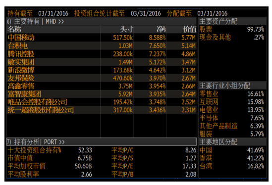 根據該基金公布的最新數據,截至今年3月31日前十大持倉股票包括中國移動、敏實集團、騰訊、唯品會和統一超商等公司。