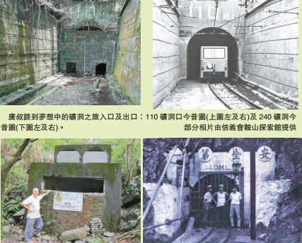 當然從現在的結果看,礦山公園不了了之。但廣叔從參與的過程中,講出了自己的夢想,「要保育礦場建築物,做好后,來一個礦洞之旅,從110洞口坐礦車入場,之后從直井坐升降機到114洞,那里地方大,可辦展覽,跟住從240洞出地面,這洞是斜坡坑洞,可裝扶手電梯。」240洞外修整好,可有小型食肆,紀念品店,讓游人游玩后有吃有買。他說,有岩石專家看過,覺得可發展到如澳洲的礦山公園,因為結構堅固,香港又不在地震帶內,很安全,但這樣發展礦洞隧道要成億元。