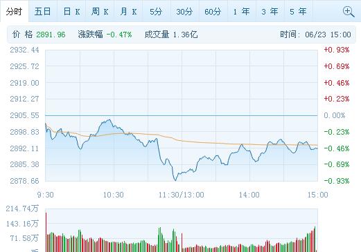 今日A股震蕩下挫,盤中滬指激戰2900點關口,但最終失守,板塊跌多漲少。英國脫歐公投今日正式開始,市場投資者避險情緒顯著上升。截至收盤,滬指跌0.47%報2891.96點,深成指跌0.41%報10255.27點。