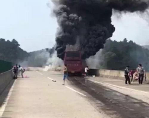 2016年6月26日10點30分左右,牌照為湘D94396的客運大巴車行駛到湖南省宜章縣境內宜章鳳頭嶺高速33KM+900M路段時,撞左側護欄,致油箱損壞,漏油起火。據湖南省高警局前方指揮員反饋,初步核查事故造成7人死亡,具體情況在進一步核查。目前,交通已恢複,司機已被警方控制,受傷人員已送往醫院救治,省市縣相關職能部門已第一時間趕到現場處置。