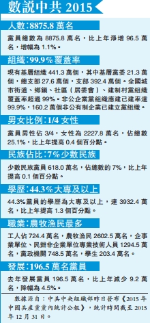 中共自誕生之日,就表明自己是由無產階級先進分子組成的政黨。為了始終保持先進性,中共正在開展覆蓋全黨的「兩學一做」(「學黨章黨規、學系列講話,做合格黨員」)學習教育。觀察者認為,從「兩學一做」學習教育的推廣和覆蓋,能夠看出中國共產黨強大的組織管理能力。截至2015年底,中國共產黨黨員總數為8875.8萬名,現有基層組織441.3萬個,覆蓋率不斷提高。很多外國人不是很理解中共為何能夠辦好北京奧運會、上海世博會等世界級活動,戰勝特大自然災害并迅速重建災區,認為這和中共嚴密的組織和強大的內部動員力不無關系。曾多次與外國政黨有過交流的中共中央黨校原副校長李君如說:「我告訴他們,你們只看到了中共組織管理的一個側面,最重要的是我們有通過學習統一思想認識的優良傳統。」中國已經站在追求實現中華民族偉大復興「中國夢」的新的歷史起點,中國共產黨的執政建設也站在新的基礎上。