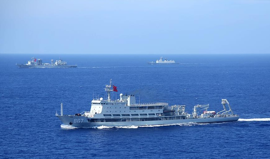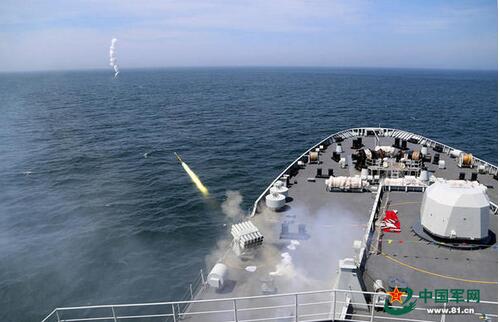 6月20日,參加“環太平洋-2016”聯合軍演的中美海軍7艘軍艦,在西太平洋進行戰術機動演練。這是中方艦艇在演練中。(資料圖 新華社)