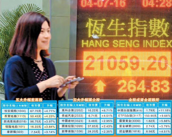 【香港商報網訊】記者伍敏報道:港股昨延續假期前反彈勢頭,在下半年首個交易日成功重上21000點關口,收報21059點,上升264點。而恒指由上周低位約20000點已反彈逾千點,回到脫歐前高位。國指則升89點,收報8802點,主板成交按日縮減逾半成,至686億元。