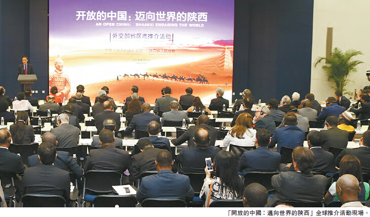 據悉,本次活動是外交部為進一步增進世界對中國的了解而舉辦的「開放的中國——中國省區市全球推介活動」之一。本次推介活動采取主題推介、展覽展示、美食品鑒、交流互動、使團商團赴陝考察等方式,重點突出「文明、富裕、和諧、美麗、創新、開放」6個方面,多視角、多渠道、全方位展示現代陝西嶄新的精神風貌、秀美的自然風光、多姿多彩的風土民情、厚重的歷史人文內涵和巨大的發展潛力。