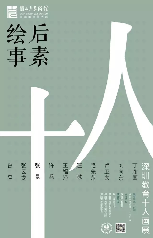 關山月美術館7月7日-7月18日期間展出由深圳教育局教育主辦的《繪事後素•2016深圳教育十人畫展》, 展出丁彥國、劉向東、 盧衛文、毛先萍、汪暾、王福澤、許兵、 張昆、 張雲龍、曾傑等十位在深圳教育系統工作的教師的美術作品。承辦單位包括關山月美術館、深圳市教育發展基金會、深圳市教育科學研究院、深圳市美術家協會。