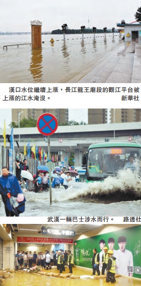 【香港商報網訊】連續多日強降雨后,5日晚到昨晨,武漢再遭強降雨襲擊。受江河湖庫水位暴漲影響,目前武漢城區積澇嚴重,全城百餘處被淹,交通癱瘓,部分地區電力、通訊中斷,目前武漢已啟動排積紅色預警。除了武漢,近期全國多地汛情嚴峻,國家主席、中央軍委主席習近平近日對解放軍和武警部隊支持地方防汛救災作出重要指示,指出要支持地方做好防汛救災工作,保障人民生命財產安全。國務院總理李克強昨早從湖南岳陽乘高鐵急赴武漢繼續視察災區。