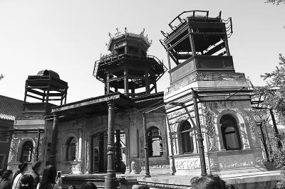 相比之下东六宫倒是保持了明初的格局。不过东六宫中位于东南部的延禧宫,在道光二十五年(1845年)被火焚毁,从此一直荒废。到了末代皇帝溥仪当政的时候,他计划在这里修建一座西洋风格的钢筋水泥建筑,用以养鱼。清廷还给它起了个好听的名字——灵沼轩(由于计划中这座建筑要大量使用玻璃,所以俗名也称“水晶宫”)。可惜这座建筑还没有完工,清王朝就灭亡了,这座半成品灵沼轩也就成为了烂尾工程,直到今日。