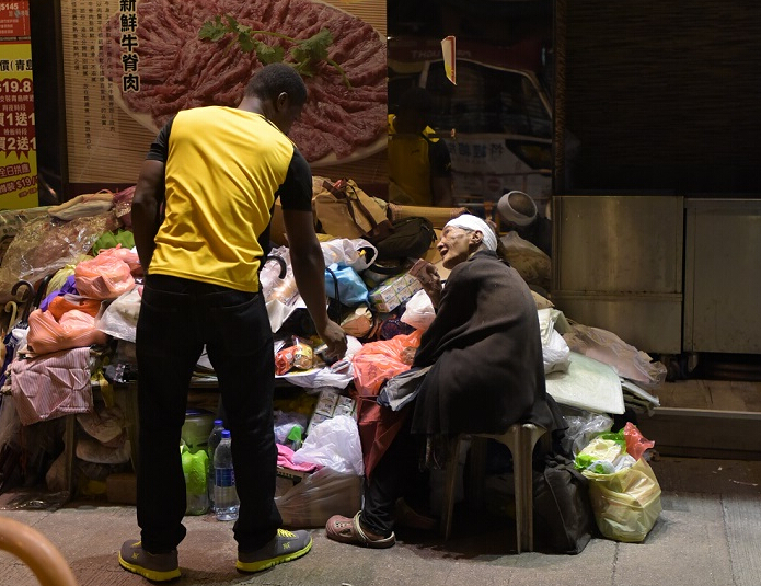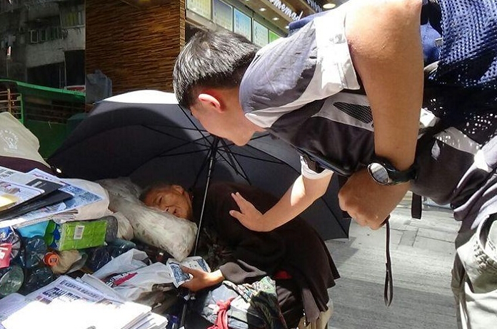 不時有街坊前來慰問「睡婆婆」,有市民以200港元購買報紙,表達心意。由於天氣酷熱,一名中三學生送上冰包給「睡婆婆」,以作消暑之用。