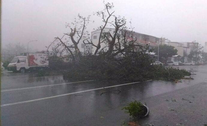 尼伯特來襲,臺東、綠島、蘭嶼多處停電、鐵皮屋、路樹、招牌全被吹得四散。