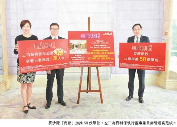 新地代理助理總經理陳漢麟表示,1B期加推的52夥,折實平均實尺約10145元,屬原價加推。1C期單位約10847元。兩批單位將於昨日起收票,最快下周一同步開售,但推售數目需視情況而定。