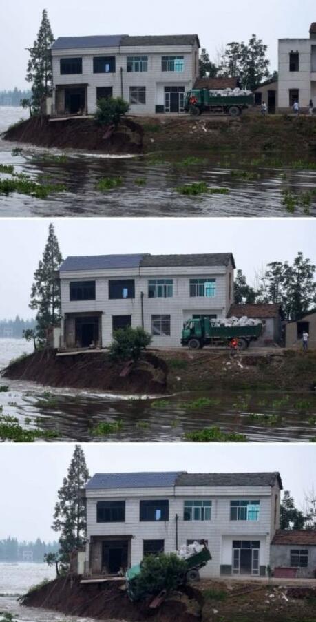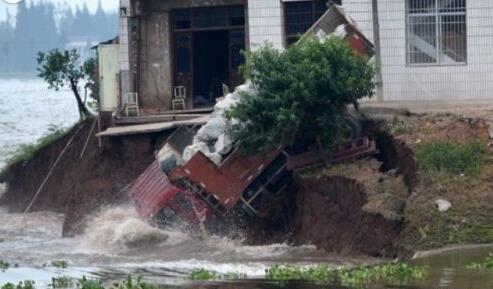 湖南卡车敢死队堵溃口:最后一刻跳车,连车带石堵住溃口。