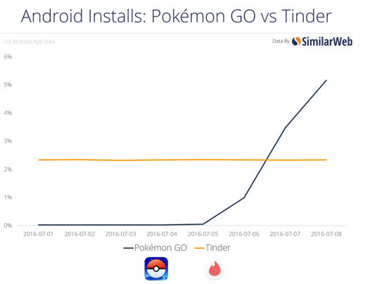 Android裝機率上《口袋妖怪Go》和Tinder的對比