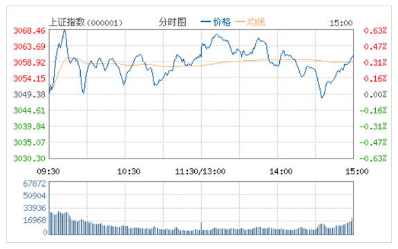 截至收盤滬指漲0.37%報3060.69點,深成指漲0.89%報10853.55點,創業板漲1.69%報2285.37點。