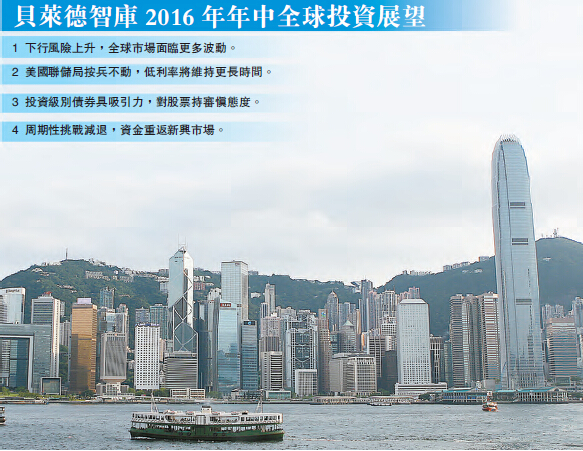 由貝萊德智庫昨日發表的2016年年中全球投資報告中指出,英國脫歐引發市場憂慮,加上美國經濟有望轉強,令全球金融市場更為波動,亞太區主動投資策略部主管貝琳達指,全球經濟增長承受下行風險,美國聯儲局預期按兵不動,相信全球低利率環境將維持更長時間,令追求較高回報的投資者,會將資產調離持有現金和低收益資產,或帶動風險資產價格上升。