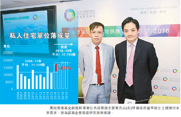 團結香港基金高級研究員曾維謙就坦言,雖然私人住宅落成量估計於2016年至2019年將達到約1.8萬伙,較過去10年大增超過六成,惟供應亦屬僅僅勉強應付社會需求,同時往后5年的供應存在隱憂,倘若新發展區延后完成開發,將再度出現供不應求情況。