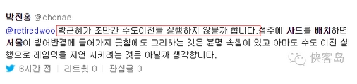 這位說:我覺得樸槿惠總統大概早晚會遷都的