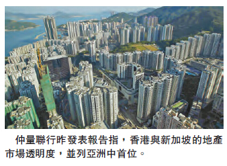 【香港商報網訊】記者鄭達偉報道:仲量聯行昨日發表最新《全球地產市場透明度指數》報告,指出香港屬亞洲區內地產市場透明度最高的城市之一,並位列全球中第15位,但報告認為,香港在企業監管上持續落後,料有關層面將成為改善地產市場透明度的一大掣肘。