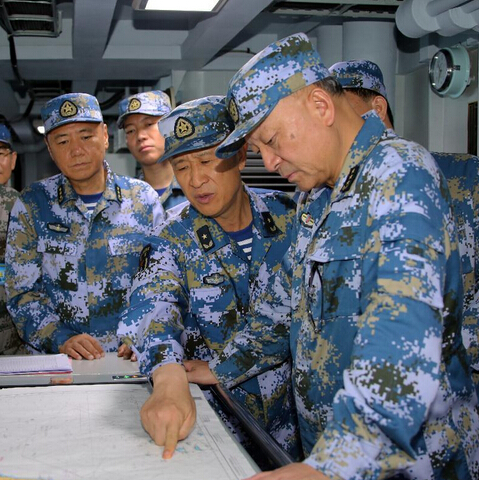 海軍在南海舉行實兵對抗演習,吳勝利現場指導。